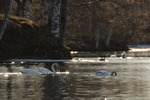 Sångsvanar i morgonljus