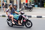 Asiatiskt fotoleende i Kuta Beach