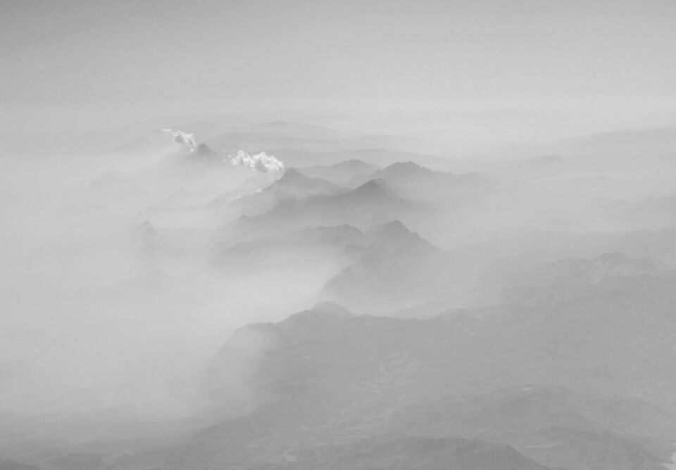 Brusig vy från ett flygplansfönster