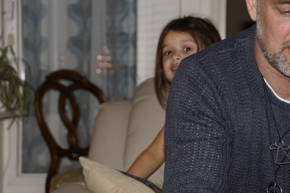 Man får sträcka på sig för att nå över pappas axel