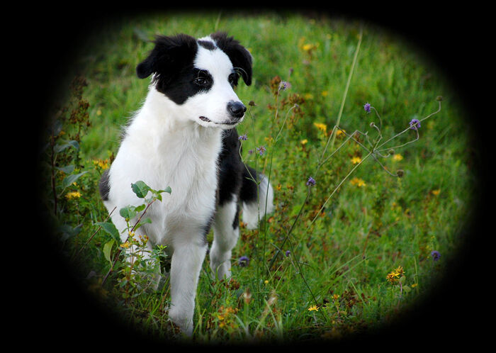 Border collien Toka i kvällsljuset