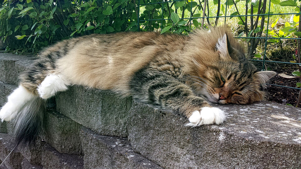 Nellie svalkar sig på muren