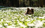 Vilar i en säng av vitsippor