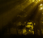 Slåttergubbar i ljusdunkel.