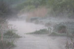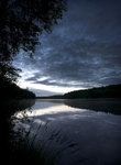 En mulen kväll nere vid sjön