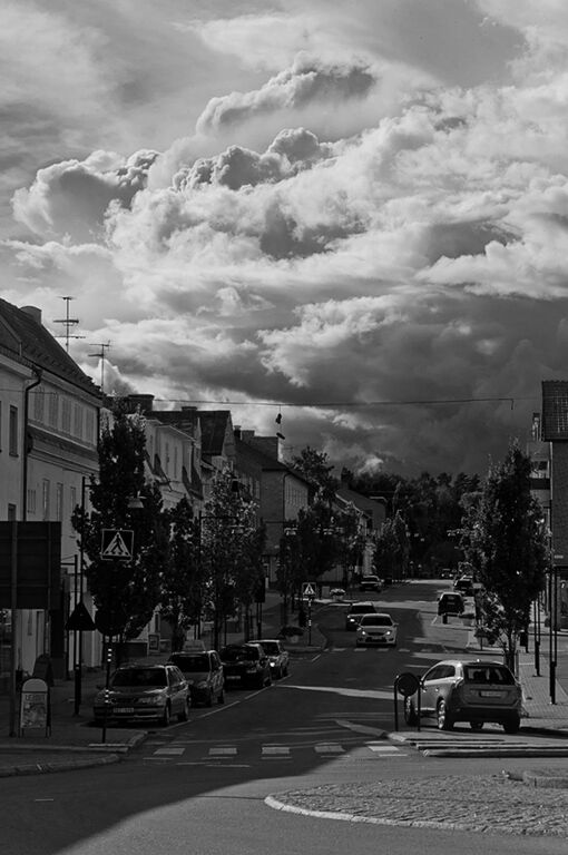 Åskmoln hotar en ovetande stad