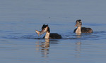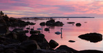 Svanfamilj i morgonrodnaden..