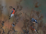 Domherre med solrosfrö i näbben!