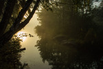 Flyger lågt i höstdimman