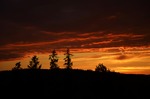 solnedgång bakom trädtoppar