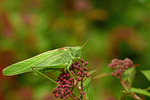 Grön vårtbitare på rosenspirea