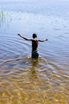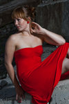 Lady in red in the backyard