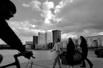 tre kvinnor samt cyklist