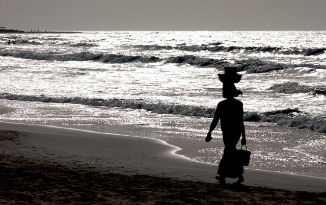 Kvinna på stranden utanför Banjul ©