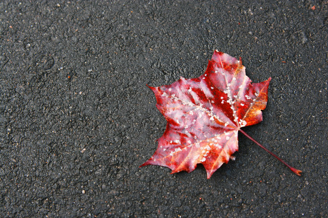 Ett ensamt lönnlöv på asfalt ©