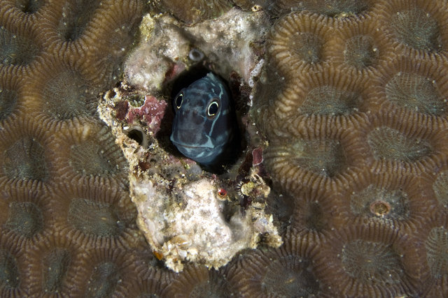 Liten Blenny kikar ut! ©