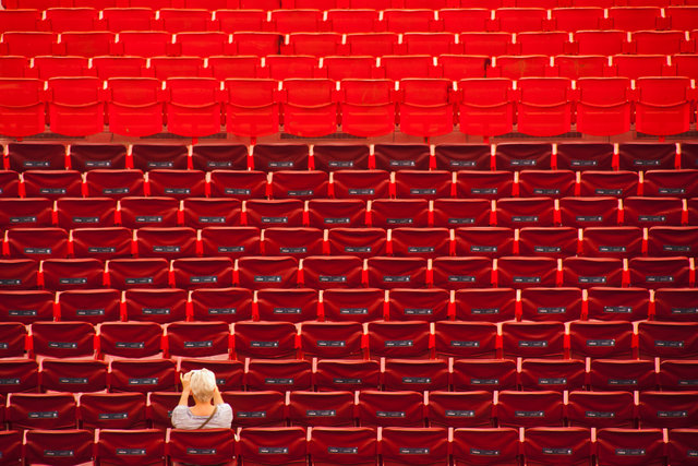 Väldigt effektfullt med det exakt strama mönstret som bryts av den enda åskådaren. Bra uppdelning mellan den ljusa respektive mörka delen av bilden.