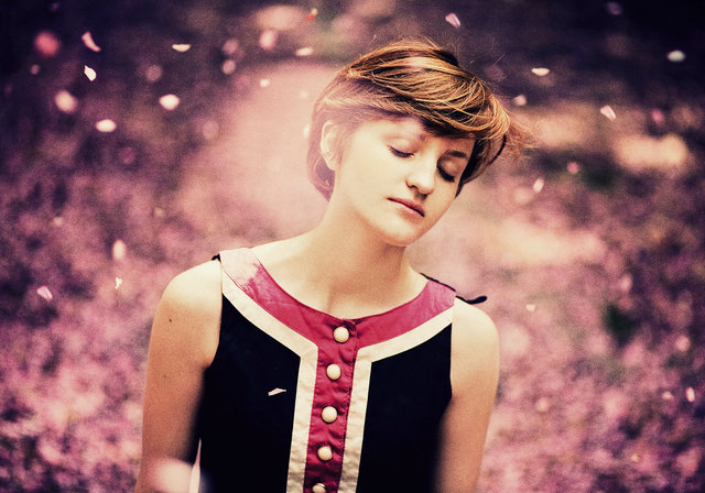 Jag tycker om färgskalan som jag vågar påstå är typisk för unga kvinnliga fotografer just nu. Av de blundande bilderna i poolen tycker jag att det här är den bästa. Jag får en inre vision av hur blombladen faller och ser hur kvinnan njuter. Bilden ger mig försommarfantasier.