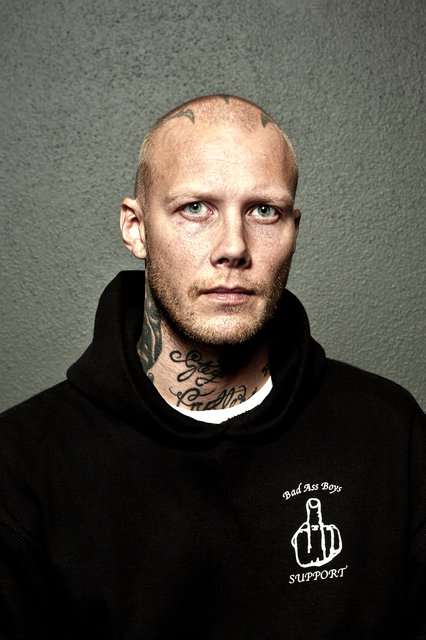 "Bad Ass Boys"... Han borde ha tagit av sig tröjan. Med en bar överkropp, några steg närmare av fotografen, något beskuret upptill och i svartvitt hade blicken blivit mer framträdande. Pannan är lite blek, det går att fixa vid redigeringen. Bländare 7,1 ger för skarp bakgrund - bakgrunden ska aldrig vara framträdande i porträtt. Det hade varit intressant att se det här motivet i ett kvadratiskt format.