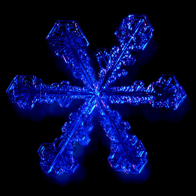 Snöflinga i färgat blixtljus ©