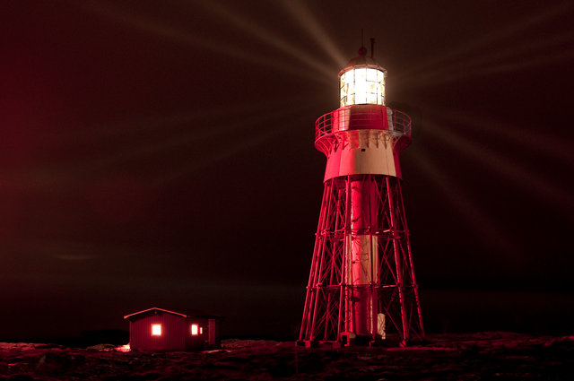 En vacker bild på en fyr. Välexponerad bild och välkomponerad. Spännande att fotografen har valt att låta den röda färgen dominera bilden.