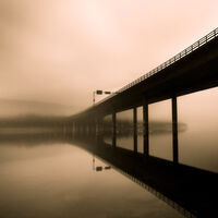 Måste ha varit nere vid en närbelägen sjö. Det börjar regna och vattendropparna lägger sig på filtret, vilket jag försöker åtgärda med putsduken. Då faller trådutlösaren ner i vattnet och jag försöker fånga den hastigt med en yvig rörelse. Jag har fokus på utlösaren och ser samtidigt i ögonvrån hur stativet med min 40d från stillastående börjar accelerera ner mot marken. Kamera och objektiv klarar sig mirakulöst nog utan någon skada. Värre var det för min filterhållare och tillhörande filter. Jaja, ljusförhållandet var ändå kasst så jag stack därifrån.