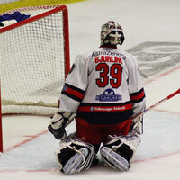 En bild på Peter Forsberg precis då han lägger iväg ett slagskott och hockeyklubban sviktas riktigt rejält.