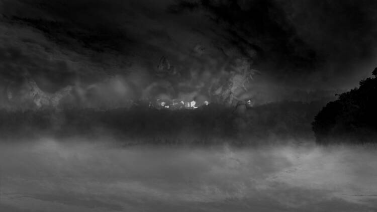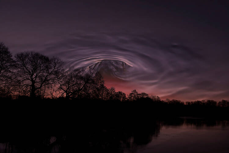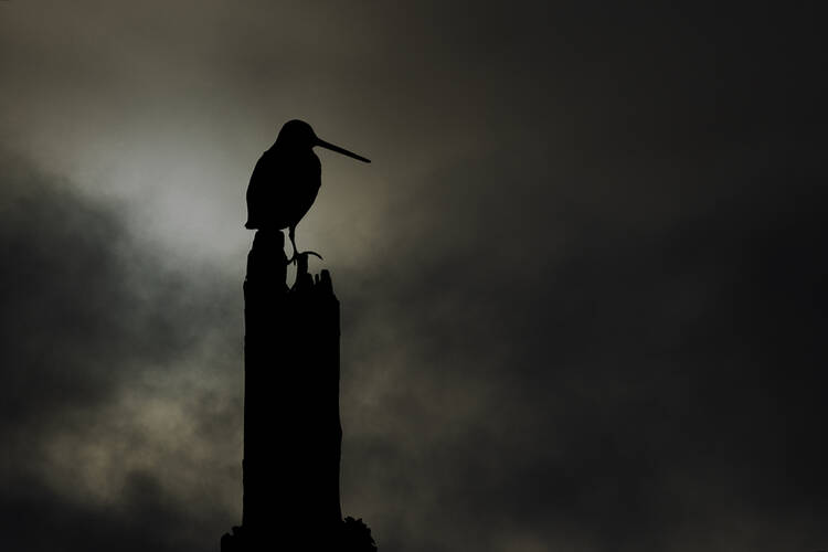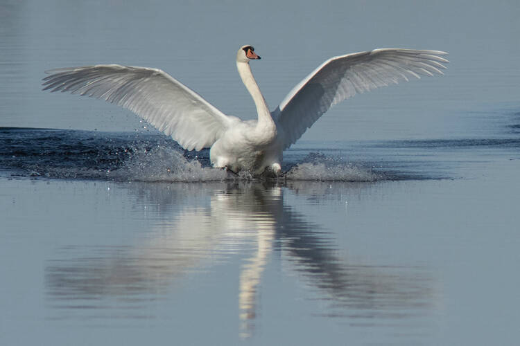 Vid en fågelsjö i gryningen.