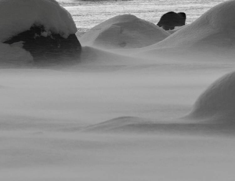 När jag masande på alla fyra i snön, med en stretande hund i ena handen och kameran i andra, fick för mig att fota en isbit, som sedan visade sig bli en riktigt intressant bild. Fast det hade jag ingen aning om då.