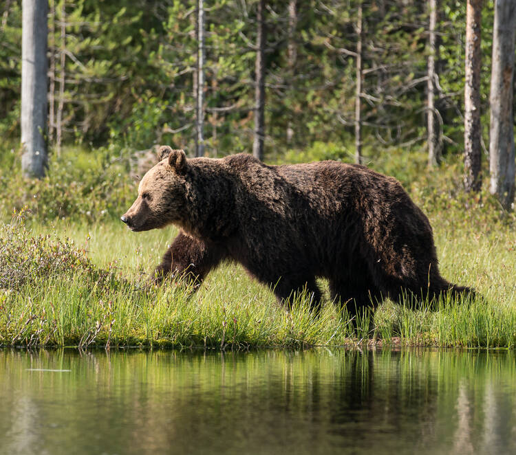 Björn, inte från bilen utan djupt inne i skogen, någon tidig morgon med lämplig morgondimma som just håller på att lätta......