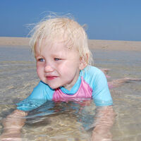 En bild på mina barn på en solig strand utomlands - då de båda två tittar och ler in i kameran. Jag jobbar på det fortfarande...