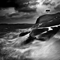När jag och hela kamerautrustningen blev översköljd av en våg i stormen utanför Lysekil