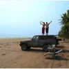 Vår expeditionsbil skvättandes genom ett lerhål jagad av vilda djur.