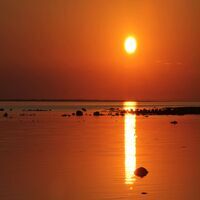 En tidig morgon vid havet nånstans när solen går upp.