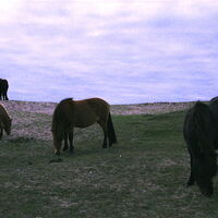 Vilda Mustanger i flock. Eller giraffer på savannen, höstlöv i Canada, eller vad som helst i Canada. Ett porträtt, ännu otaget.