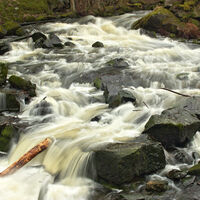 I skogen vid en tjärn eller på på ett fjäll.