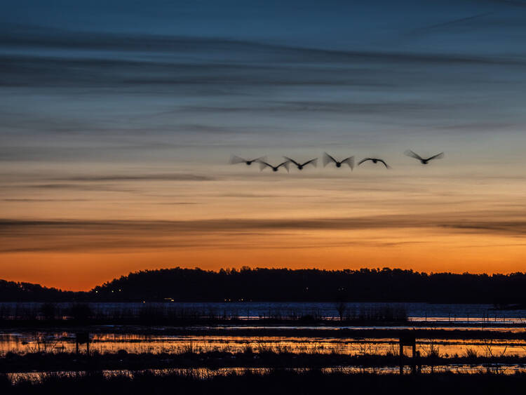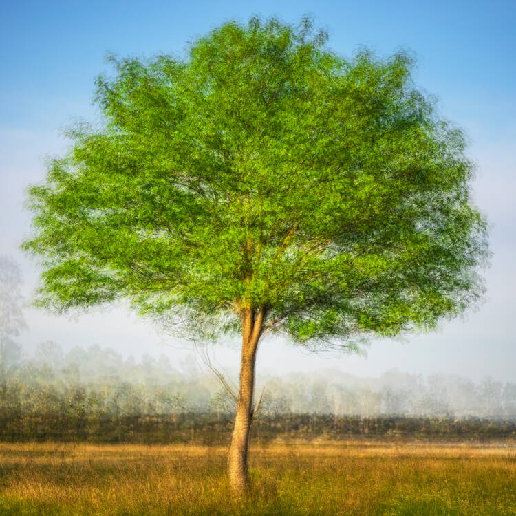 Ensam i gryningen i min trädgård.