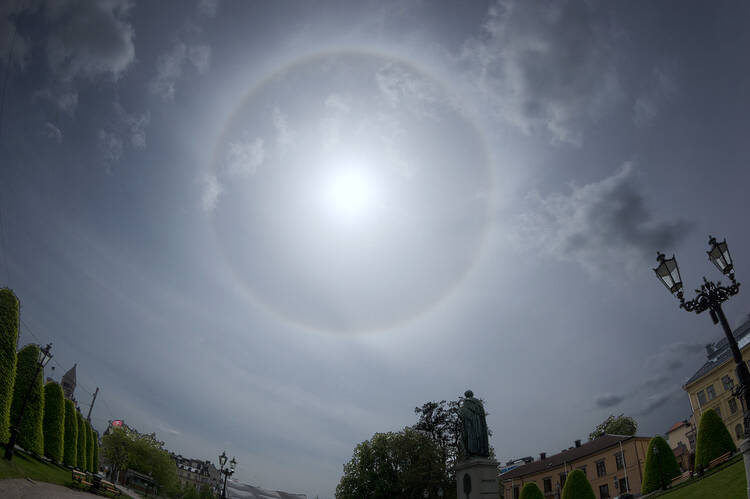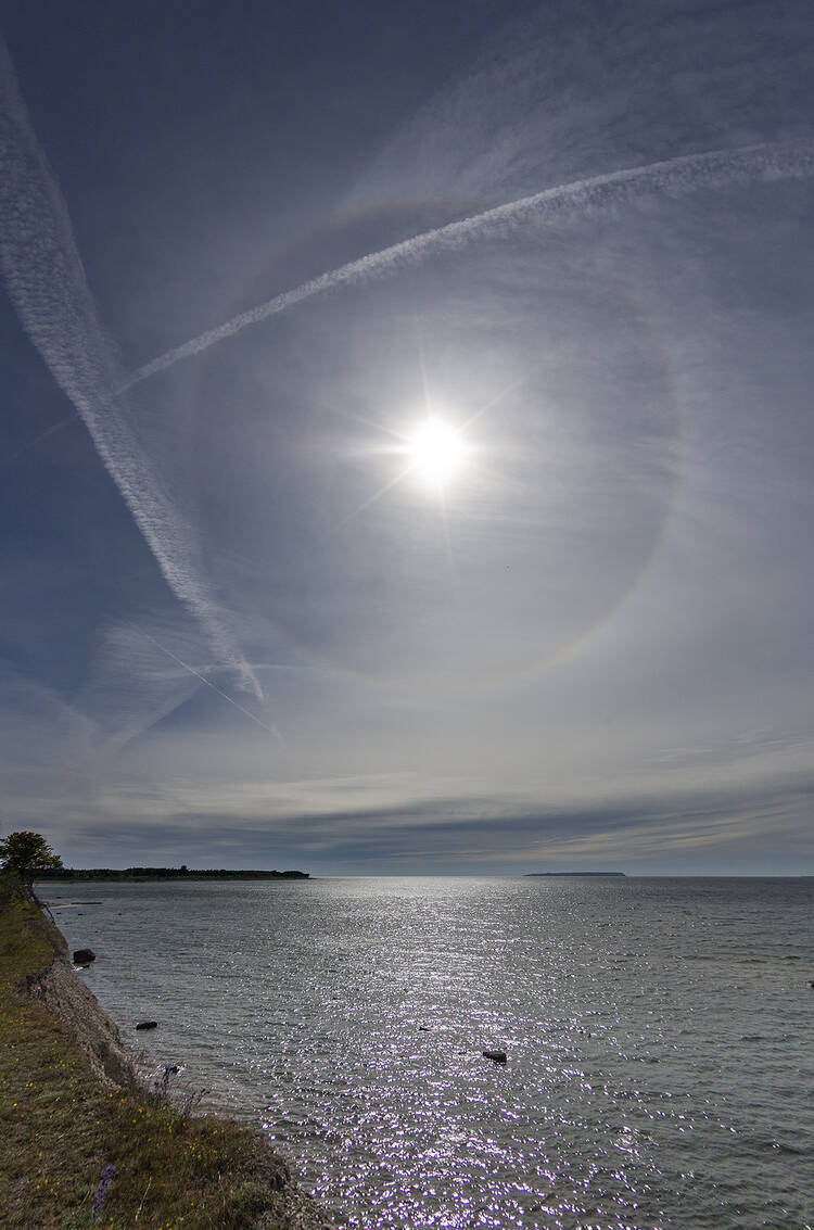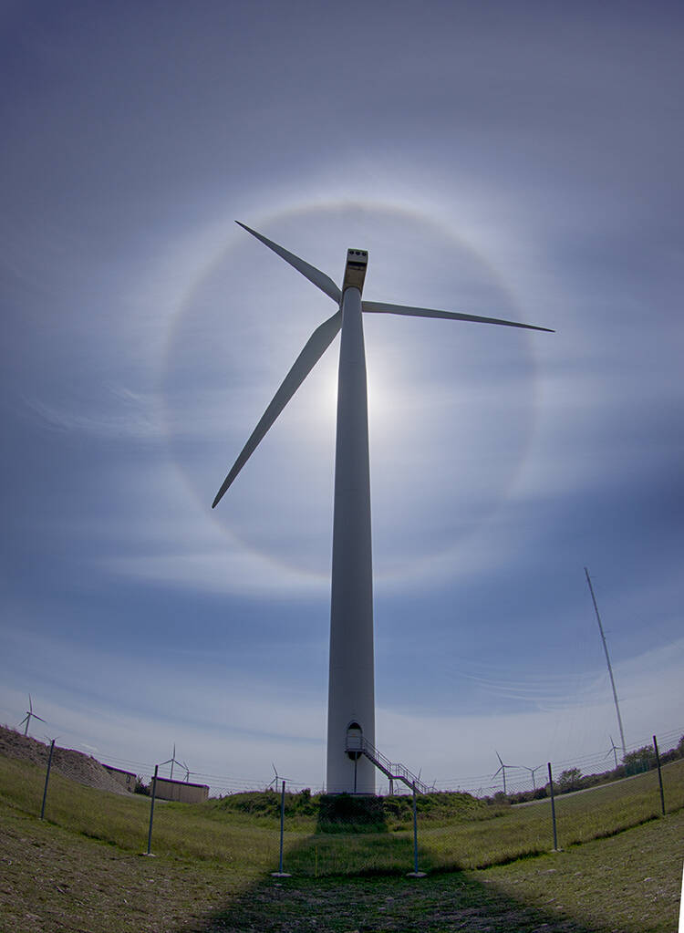 Står med kameran i handen med ett utvalt vindkraftverk i sikte. Just då tänds tidernas regnbåge!