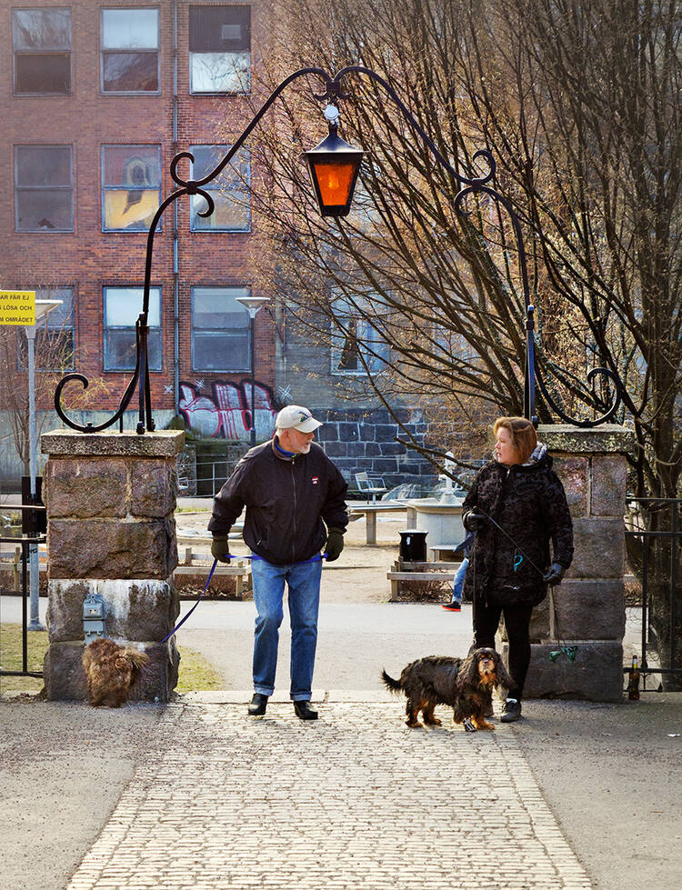 Med min fru eller ihop med vänner och bekanta.