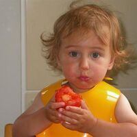 En mink med byte i munnen som skrämmer barnbarnet Anton 2år
