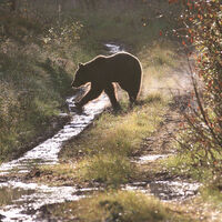 Det är sådana där gånger då folk inte tar hänsyn till de vilda djuren utan skall till varje pris komma närmare,till ex de som stanna sin bil 40.-50 meter bakom min bil och gick ur bilen varvid björnen som ätit i lugn o ro någon timme,går upp på bakbenen för att se bättre (synen är björnens sämsta sinne) river loss ett köttstycke ur älgen o rusar in i skogen.