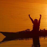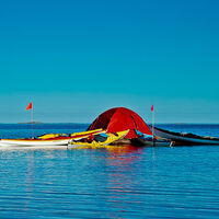 Ensam på havet en tidig morgon på Ålandshav i kajaken, omgiven av ca 500 tordmular...