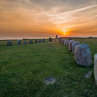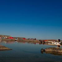 På en kobbe i havet.