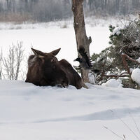 Det var i vintras (2010) när en kråka försökte jaga bort en älg och dom sen psykade varann hur länge som helst. Kråkan stod på behörigt avstånd och stirrade och älgen låg ner och stirrade tillbaka. Kvalitetsmässigt blev det inga höjdarbilder, men att fånga situationen kändes som en fullträff.