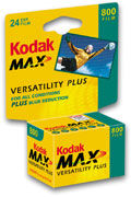 KODAK MAX Versatility Plus Film brings picture quality to a new level by combining the color quality, fine detail, and picture clarity of lower-speed films with the benefits of higher speed films. This film delivers extra sharpness and unsurpassed fine grain (among 800-speed films) for crisper, clearer pictures -even when enlarged. KODAK MAX Versatility Plus Film produces consistently bright, vibrant colors across a wide range of lighting conditions. It provides accurate skin-tone reproduction for natural-looking "people pictures."