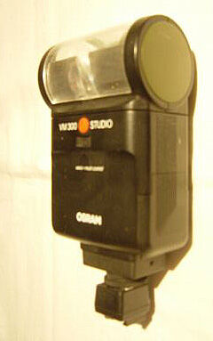 Kamerablixt med ledtal 32. Två olika auto-lägen samt manuellt. Vridbart blixthuvud från rakt framåt till rakt uppåt.