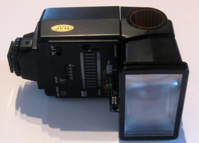 En gammal och lite ovanlig Sunpak blixt då denna INTE är kameraspecifik. Den är rolig också så till vida att den har egen automatik vilket faktist är användbart (om än inte perfekt) vid foto med radiotrigg. Idag mycket billig blixt och hittar du en begagnad så tveka inte att köpa den då det är en välgjort och robust blixt.