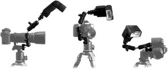 Blixthållare för makrofotografering.Sätts fast på QR-plattan,som måste vara Arca-Swiss stil.Lederna gör att man kan vrida blixten ovanför eller till sidan av objektivet.