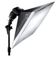 Softboxen har en enkel diffusor, storlek cirka 43 x 43 cm.