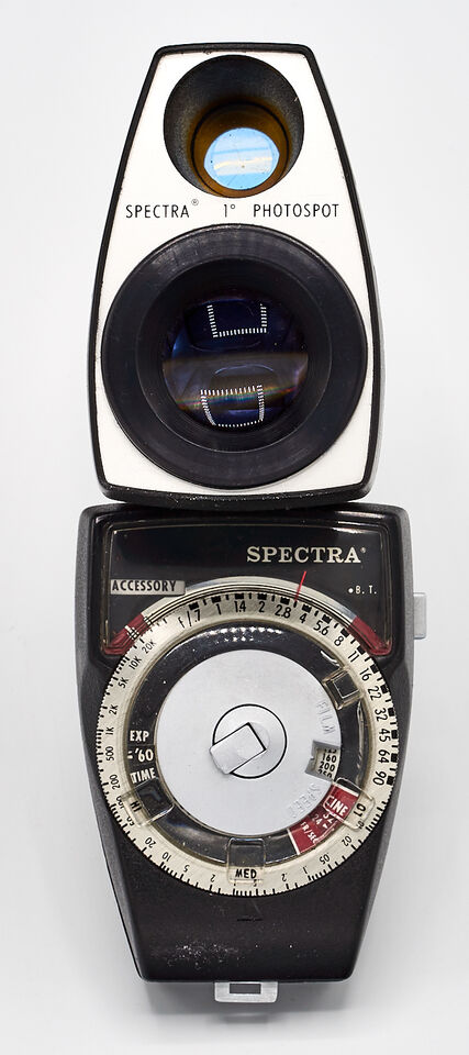 Spectra är en bra och pålitlig analog ljusmätare som än idag hållet måttet. Jag använder den nu till min Sony Alpha A900. Det ger bättre och jämnare utexponerade bilder än den inbyggda mätaren.